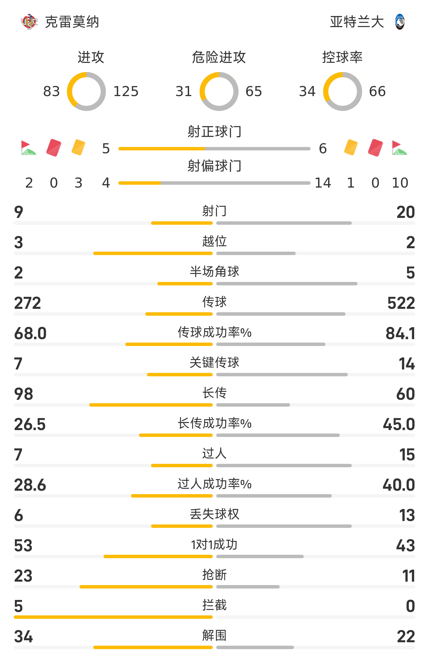 60' ซามาร์ดซิชยิงจากด้านนอก และผู้รักษาประตูเครโมนาก็เซฟบอลจากเส้นหลัง