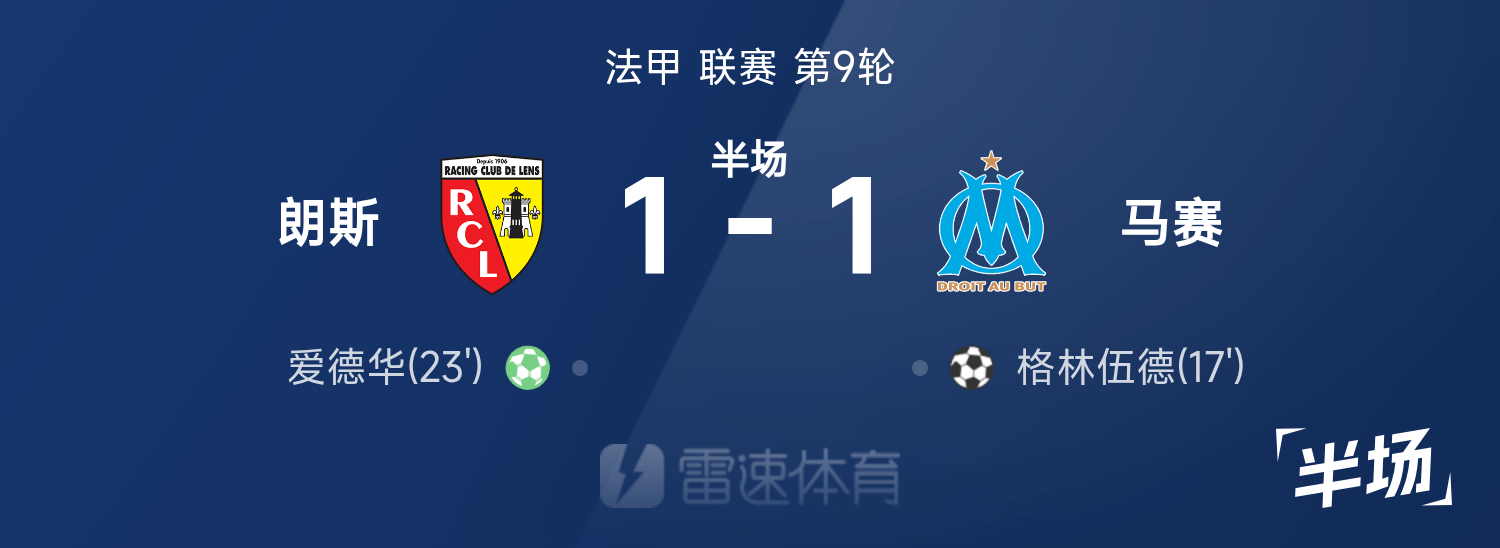 พักครึ่งลีกเอิง 1 : กรีนวูดสกอร์, เอดูอาร์ตีเสมอด้วยการยิงจุดโทษ, มาร์กเซย 1-1 เลนส์