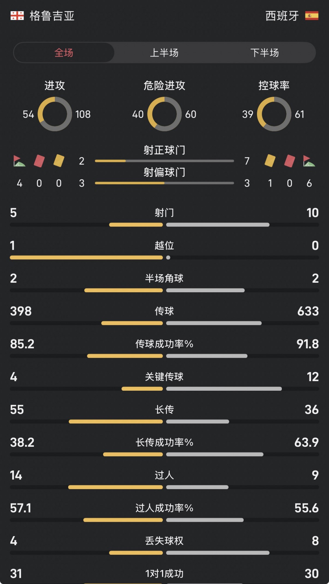 สถิติเต็มเกมของจอร์เจีย vs สเปน