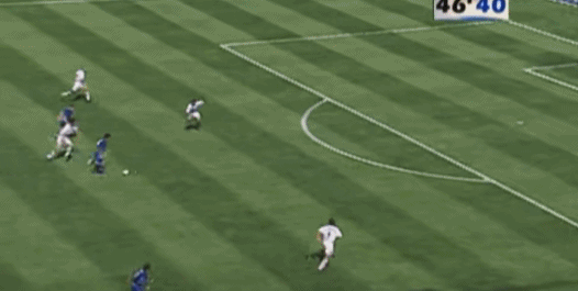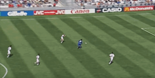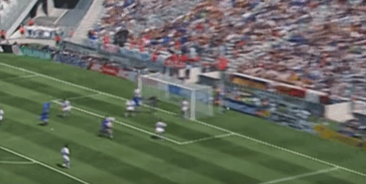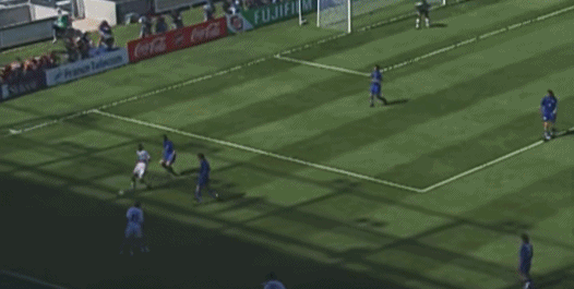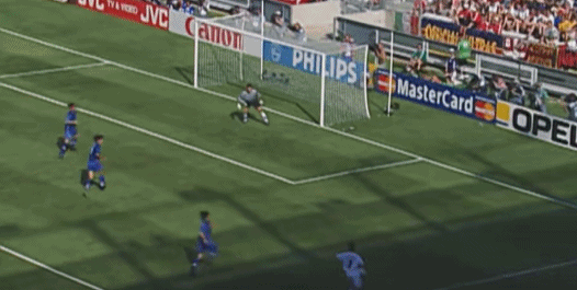 ต่อจากนั้น เดล ปิเอโร รับบอลจากทางซ้าย แกว่งไปทางซ้ายและขวา และสุดท้ายก็เหยียบบอลและล้มลงกับพื้น