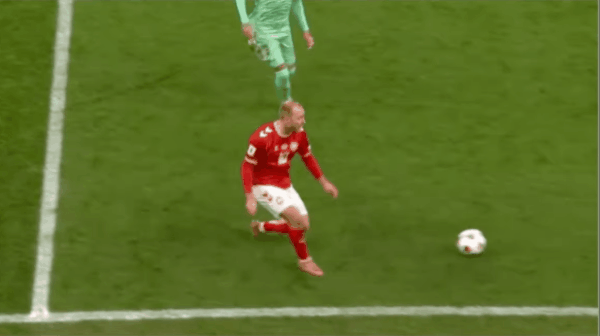 22’ ฮอยเบลยิงจากโค้งโค้งอย่างเฉียบขาด และบอลข้ามคานไป