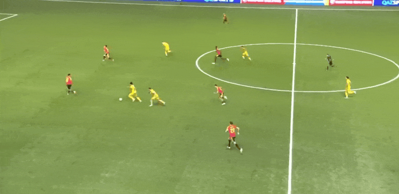 33’ ลูกยิงด้านนอกของ Satepev ถูกกันไว้จากเส้นหลัง แล้วกล้องก็จับโทรศัพท์ของเจ้าหน้าที่ข้างสนาม