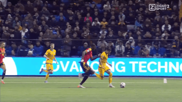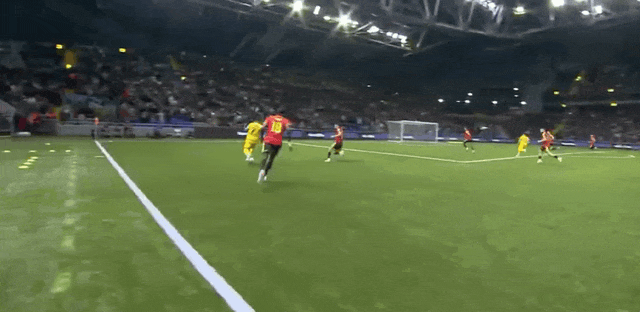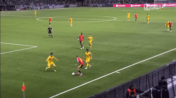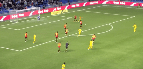 23' คาสตาญจ่ายบอลเข้าไปในเขตโทษ และอานาเบคอฟโหม่งอย่างทรงพลังของทรอสซาร์ดในพื้นที่สามวินาที