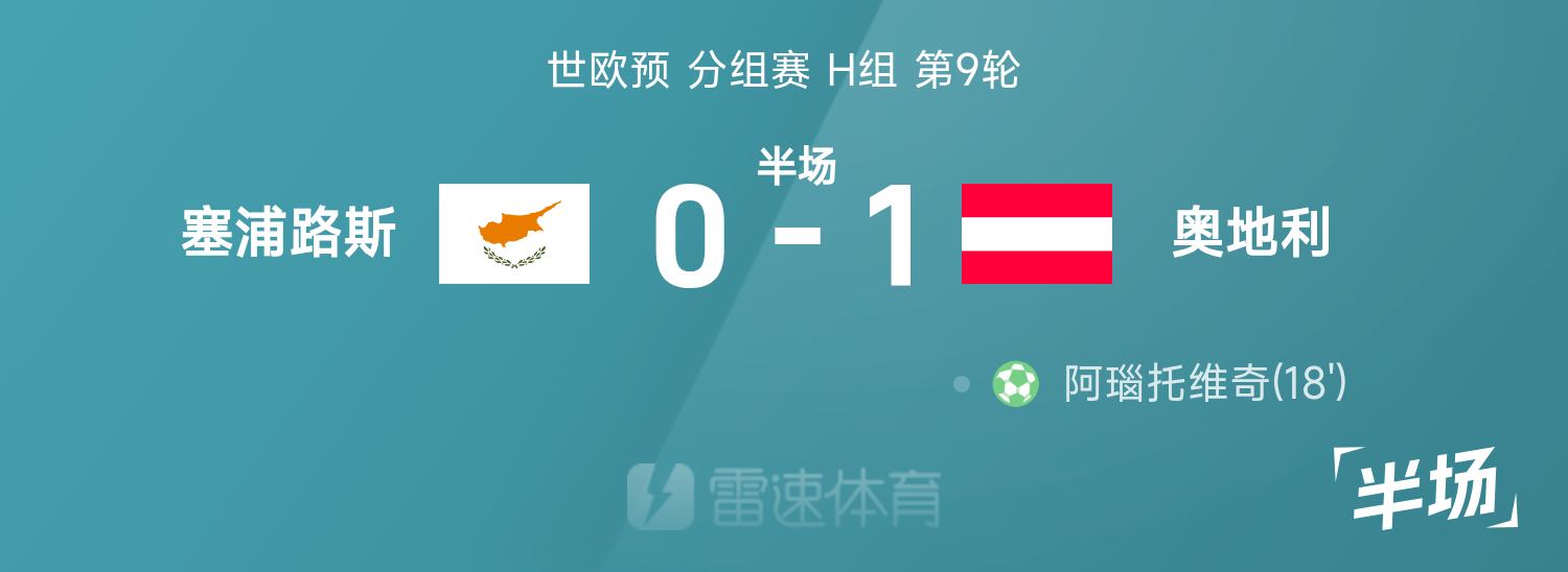 ครึ่งแรกรอบแรกของโลกยุโรป: อาร์เนาโตวิชยิงจุดโทษ ออสเตรีย 1-0 ไซปรัส