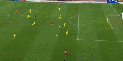 61' เอ็มโบโลบุกเข้าไปในโซนสามวินาทีหลังจากขโมยบอล แต่ถูกผู้รักษาประตูสกัดไว้จากเส้นหลัง