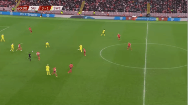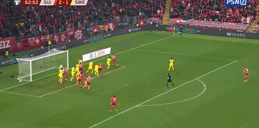 63’ คือความกว้างของเส้นผม! เตะข้างสนามสวิสถูกนำเข้าสู่โซนสามวินาที ก่อให้เกิดการรุกอย่างต่อเนื่อง