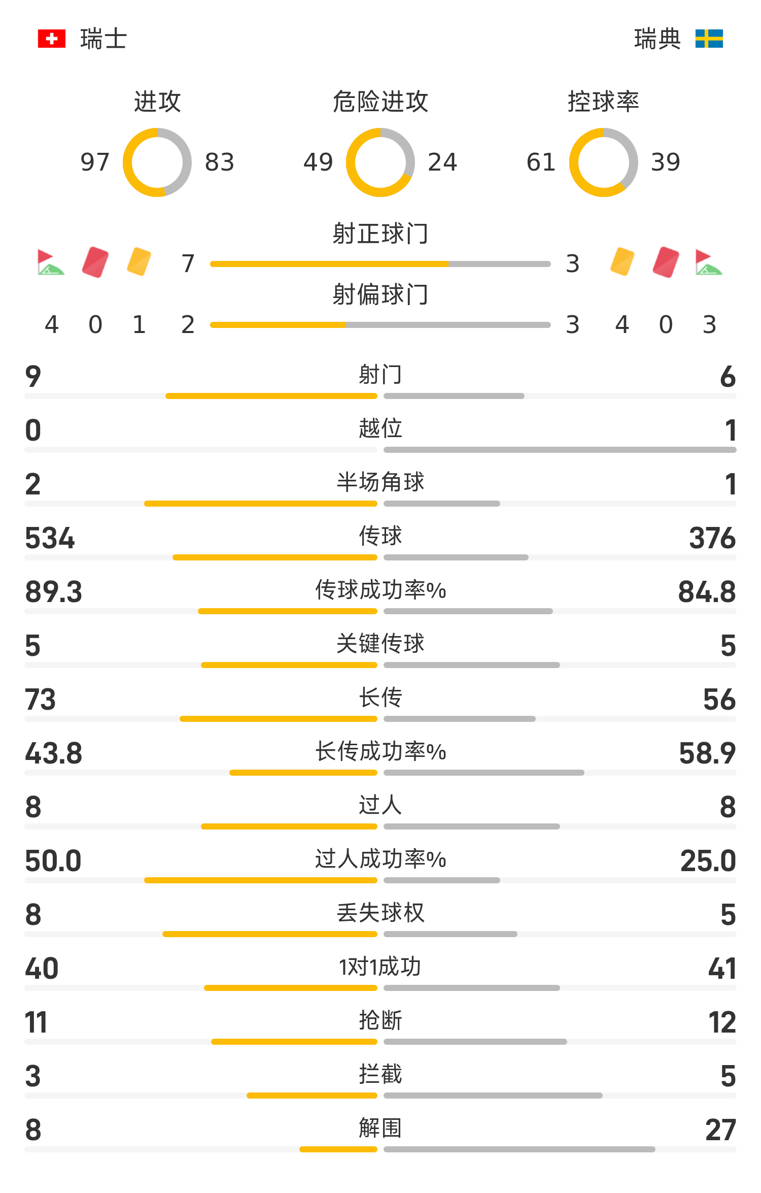30’ สวีเดนสร้างโอกาสในการสังหารในโซนสามวินาทีและพยายามส่งมันไปที่ ประตูแต่ถูกกองหลังแก้ได้
