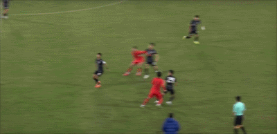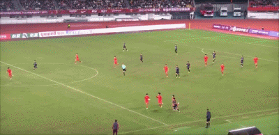 ทีมจีนเตะข้างสนามที่ระยะ 35' จากนั้นผู้รักษาประตูได้โหม่งบอลในพื้นที่สามวินาที