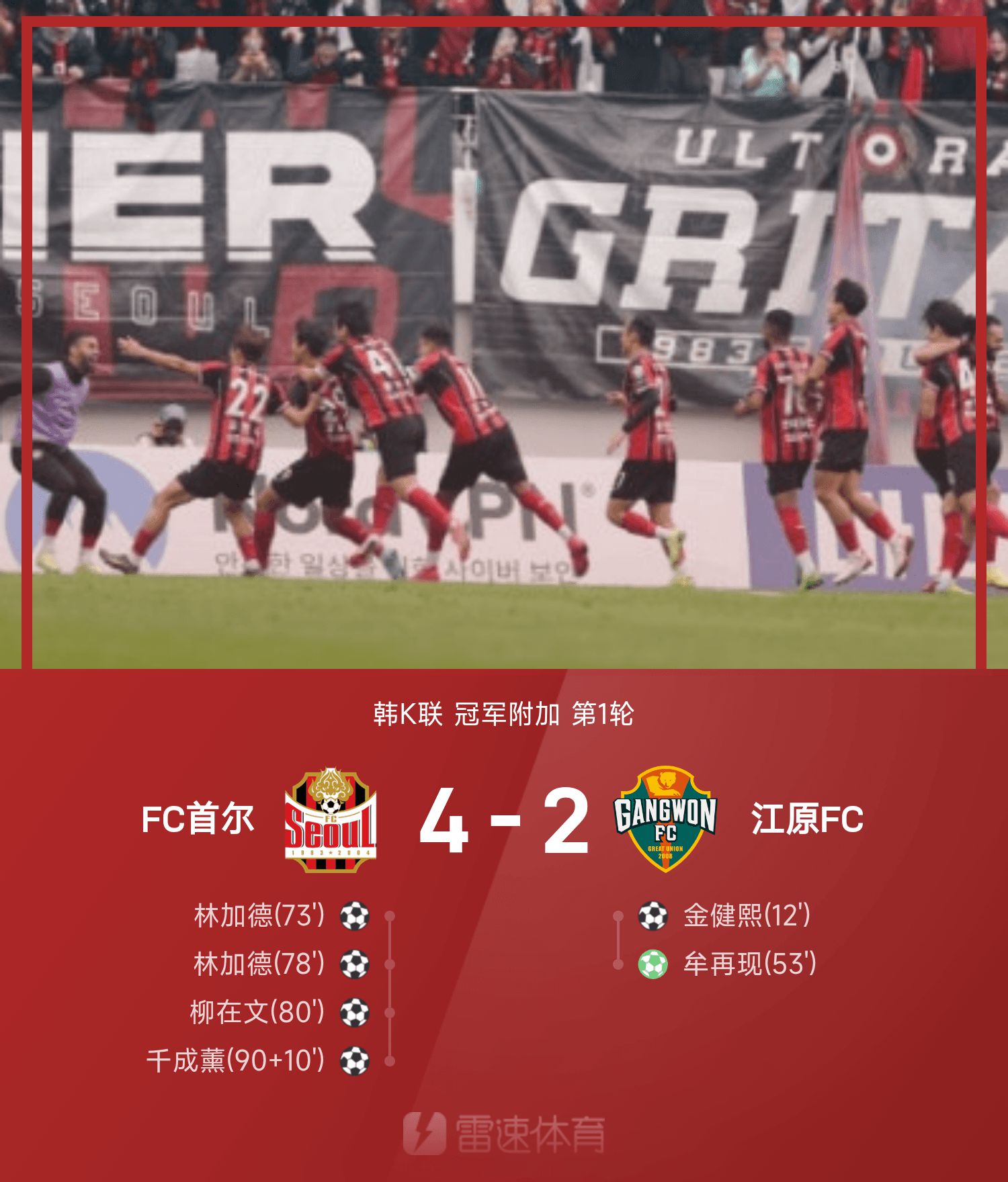 6686 Sports รายงานเมื่อวันที่ 26 ตุลาคมว่าในรอบเพิ่มเติมแรกของการแข่งขันเคลีกเกาหลีครั้งที่ 25 ทีมเหย้าของเอฟซี โซลพลิกกลับแกงวันเอฟซี 4-2 Kim Jianxi และ Mou ปรากฏตัวอีกครั้งเพื่อช่วย Gangwon ได้เปรียบ 2 ประตู; ลินการ์ดทำประตูได้สองครั้ง ส่วนริว แจมุน และชอน ซองฮุน ทำประตูได้อย่างต่อเนื่อง ช่วยให้โซลกลับสกอร์ 4-2