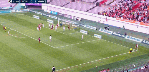 45+3' กังวอนเตะฟรีคิกเข้าไปในโซนสามวินาที แต่หลี่ ซางเซียนล้มเหลวในการคุกคาม