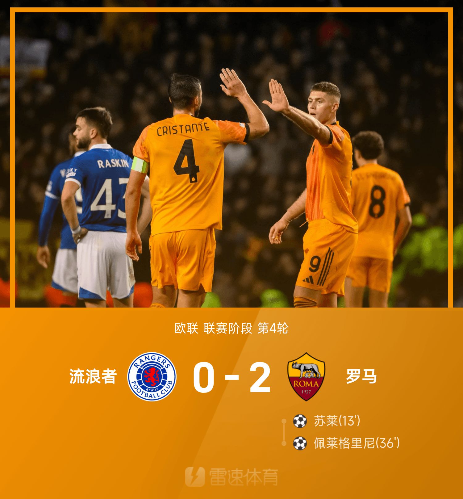6686 ข่าวกีฬาเมื่อวันที่ 7 พฤศจิกายน ในรอบที่สี่ของยูโรปาลีก 25/26 โรมาเอาชนะเรนเจอร์ส 2-0 ในครึ่งแรกของเกม ซูเล และเปเญกรินี่ทำประตูได้อย่างต่อเนื่องเพื่อช่วยให้โรมาคว้าชัยชนะได้ ในครึ่งหลังของเกม Celik พลาดโอกาสทำประตูที่ว่างเปล่าและทั้งสองทีมไม่สามารถเปลี่ยนสกอร์ได้ สุดท้ายทีมเยือนโรม่าเอาชนะเรนเจอร์ส 2-0