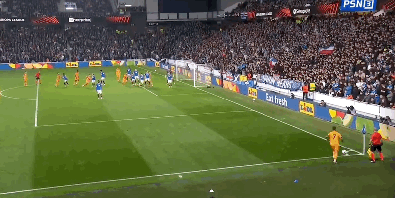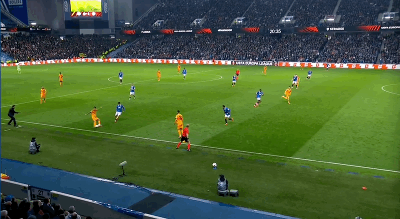 22’ ซูเลยิงจากด้านนอก และผู้รักษาประตูของเรนเจอร์สก็เซฟบอลจากเส้นหลัง