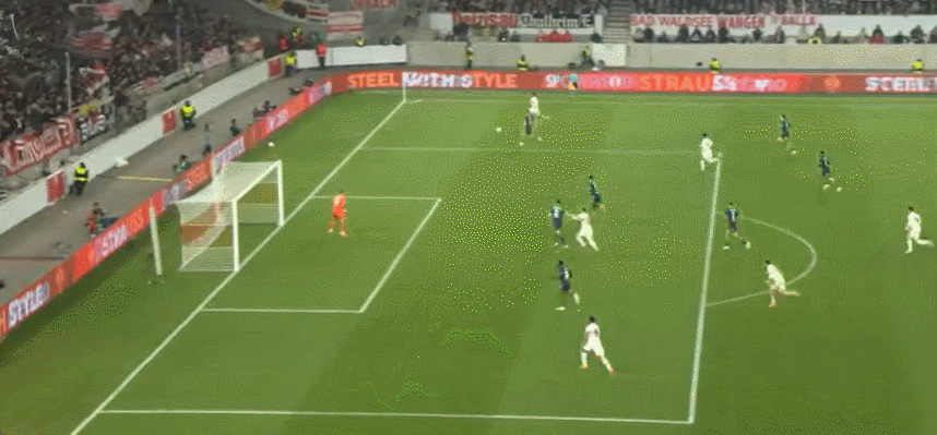 58' ฮันนัสรับบอลจากเพื่อนร่วมทีมที่อยู่บนโค้งและผลักเข้ามุมไกล เวเรนรอยธ์บินไปเซฟบอล