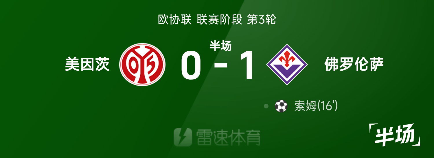 ครึ่งแรกยูฟ่า : ซอมทำประตู, ไมนซ์ 0-1 ฟิออเรนติน่า