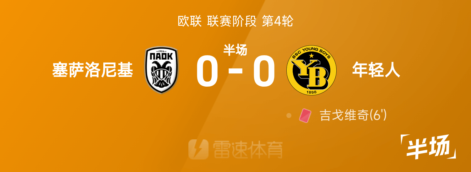 6686 Sports 07 พฤศจิกายน ในรอบที่สี่ของยูโรปาลีก 25/26 เทสซาโลนิกิเผชิญหน้ากับยังบอยส์ หลังพักครึ่งสกอร์ระหว่างทั้งสองฝ่ายคือ เทสซาโลนิกิ 0-0 โดยจิโกวิชเป็นใบแดง