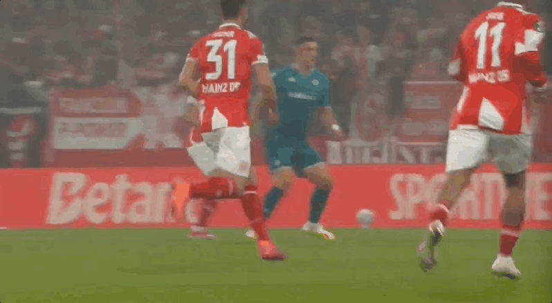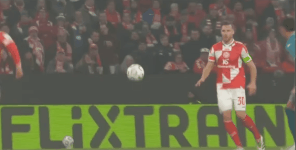 23' พิคโคลีมีโอกาสที่ดีเยี่ยมในโซน 3 วินาที แต่ผู้รักษาประตูไมนซ์เซฟไว้ได้