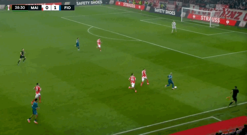10' วิเปียร์โหม่งบอลในโซนสามวินาที และผู้รักษาประตูฟิออเรนติน่าก็ยึดบอล