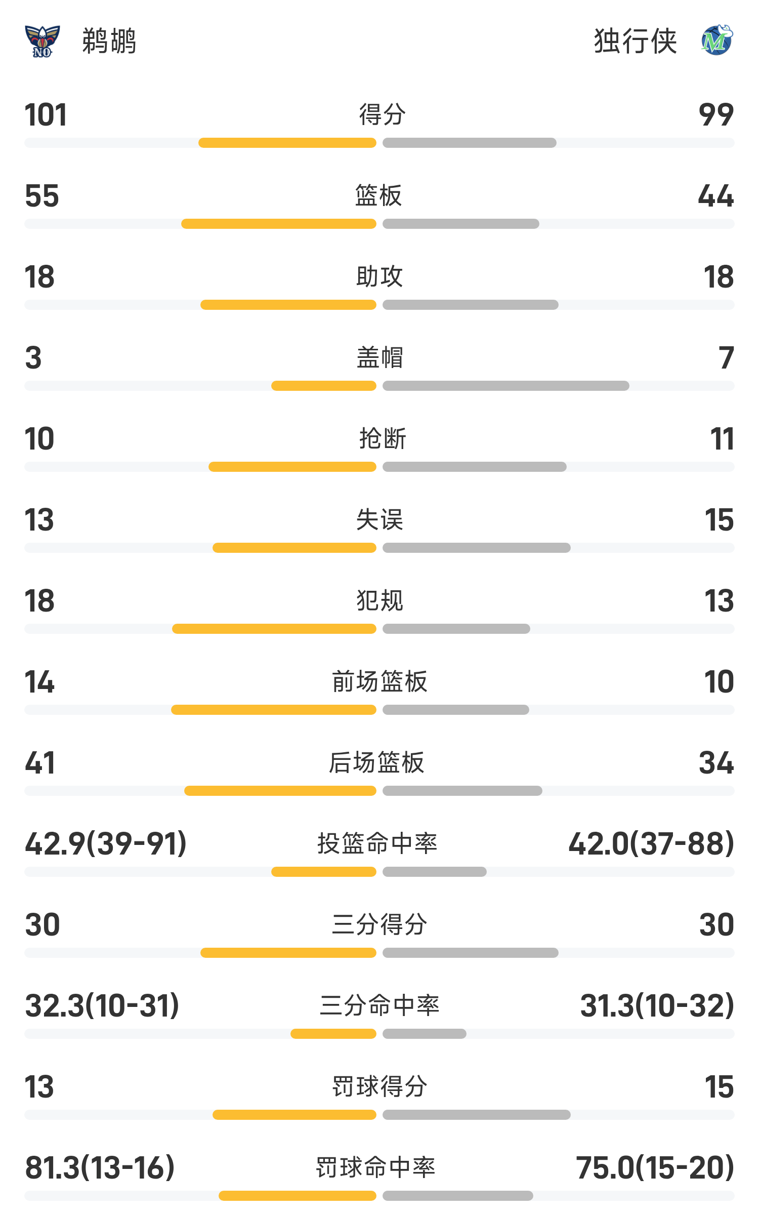 ในตอนท้ายของเกม Mavericks แพ้ Pelicans 99-101