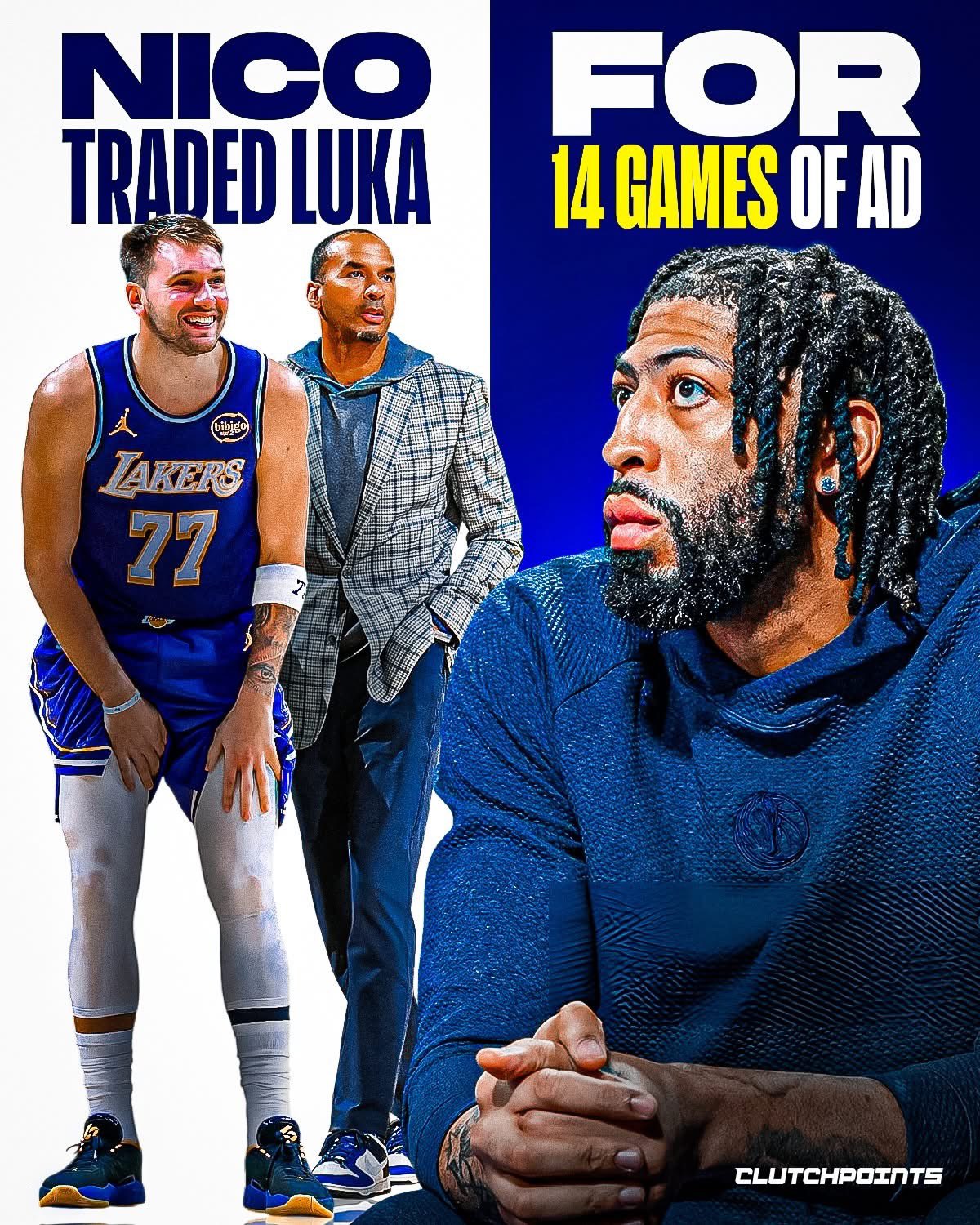 คะแนนคลัตช์เขียนว่า: แฮร์ริสันไม่อยู่ในชั้นเรียน พูดตามตรง แฟน ๆ Mavericks คาดหวังสิ่งนี้มาเป็นเวลานาน - พวกเขาตั้งตารอจนถึงทุกวันนี้และยังคงตะโกนว่า 'Fire Nico! ' นี่คือผู้จัดการทั่วไปที่ทำการแลกเปลี่ยนที่ยังคงไม่น่าเชื่อ โดยส่งลูก้า ดอนซิช หน้าทีมออกไปเพื่อแลกกับแอนโทนี่ เดวิส...และมีเพียง 14 เกมที่ไม่มีอยู่จริง "