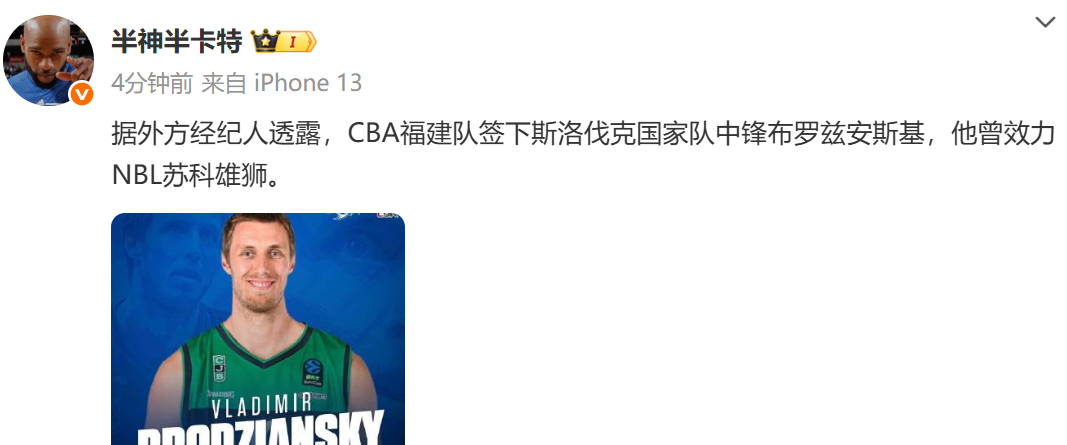 6686 Sports News เมื่อวันที่ 5 พฤศจิกายน ตามรายงานของสื่อในประเทศ "Demigod Half Carter" ตามรายงานของตัวแทนต่างประเทศ ทีม CBA Fujian ได้เซ็นสัญญากับทีมชาติสโลวาเกีย หมายเลข 5 Brozianski ซึ่งครั้งหนึ่งเคยเล่นให้กับ NBL Suko Lions