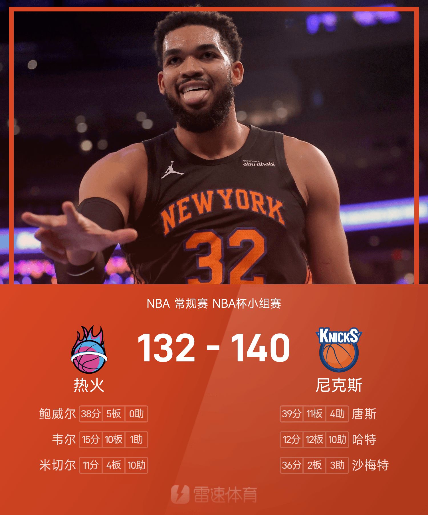 รายงาน NBA Cup ทาวน์ส 39 แต้ม 11 รีบาวด์ นิกส์ ชนะ ฮีต 140-132