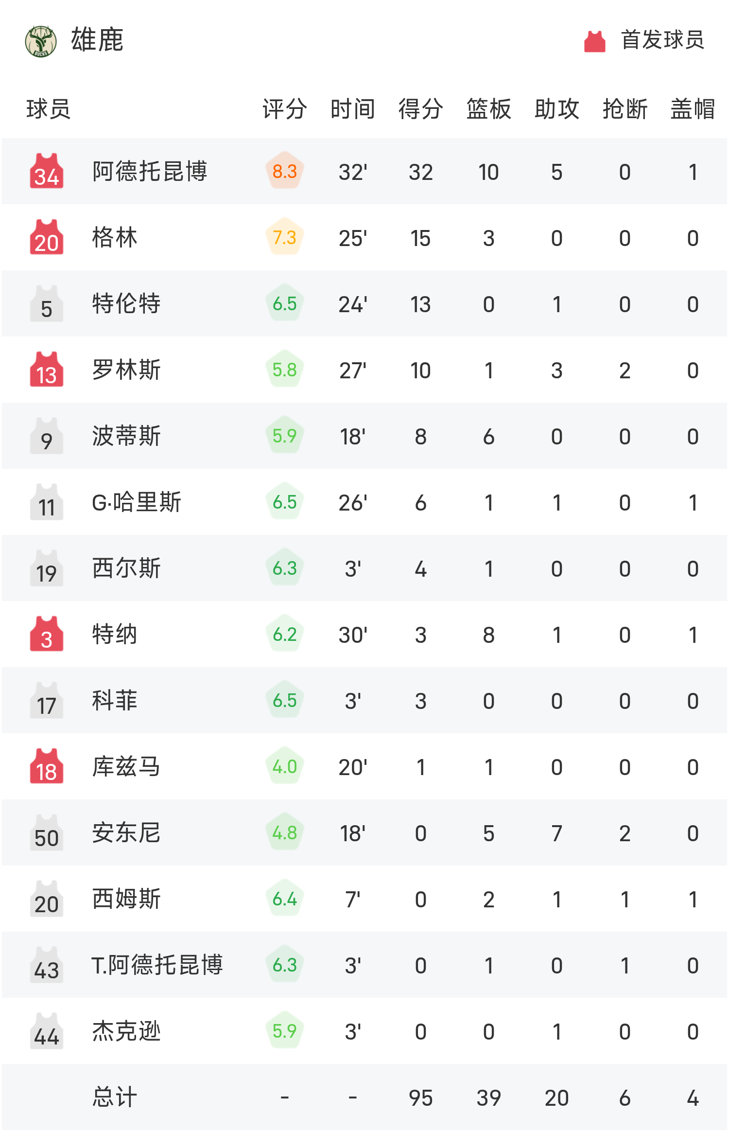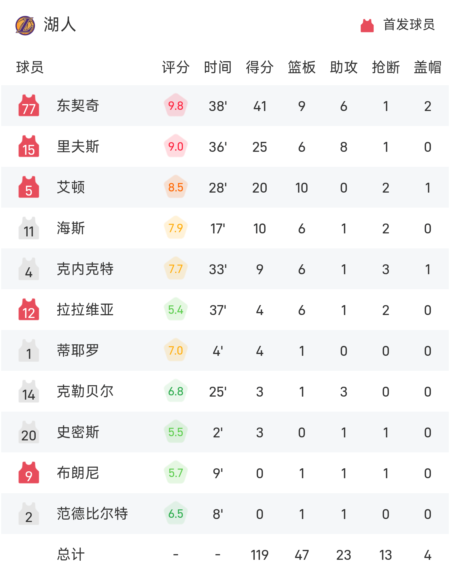 ในตอนท้ายของเกม บัคส์ แพ้ เลเกอร์ส 95-119