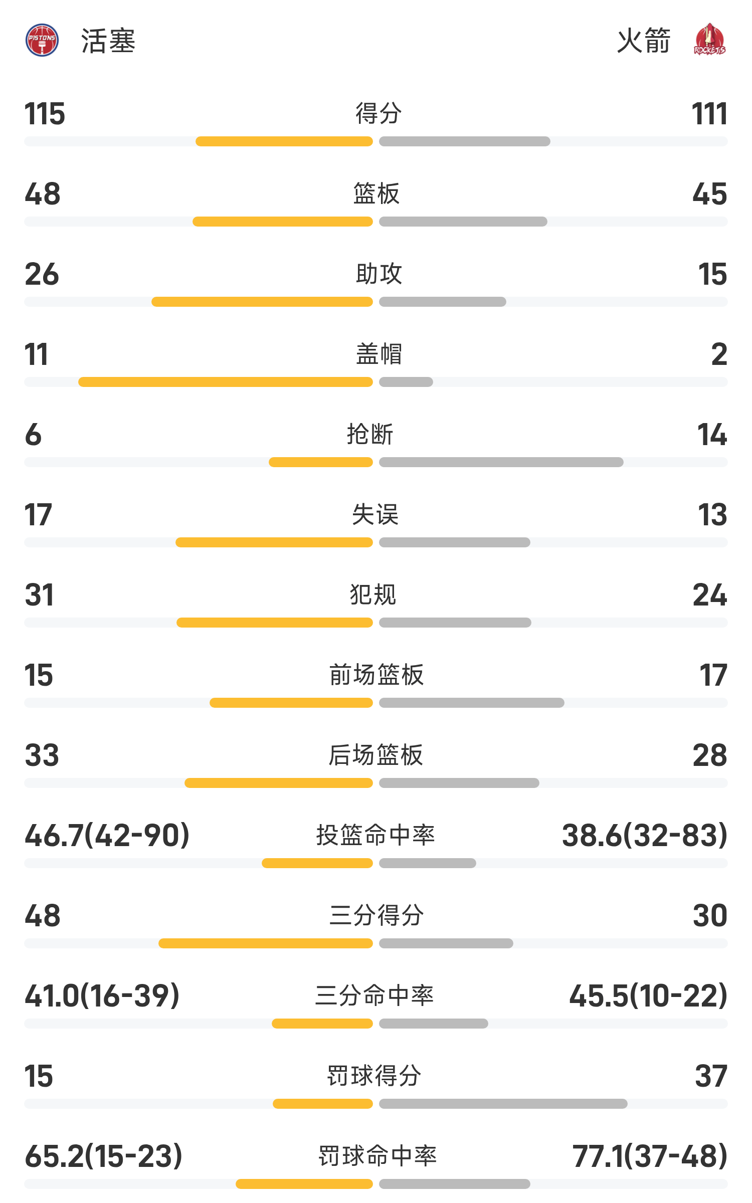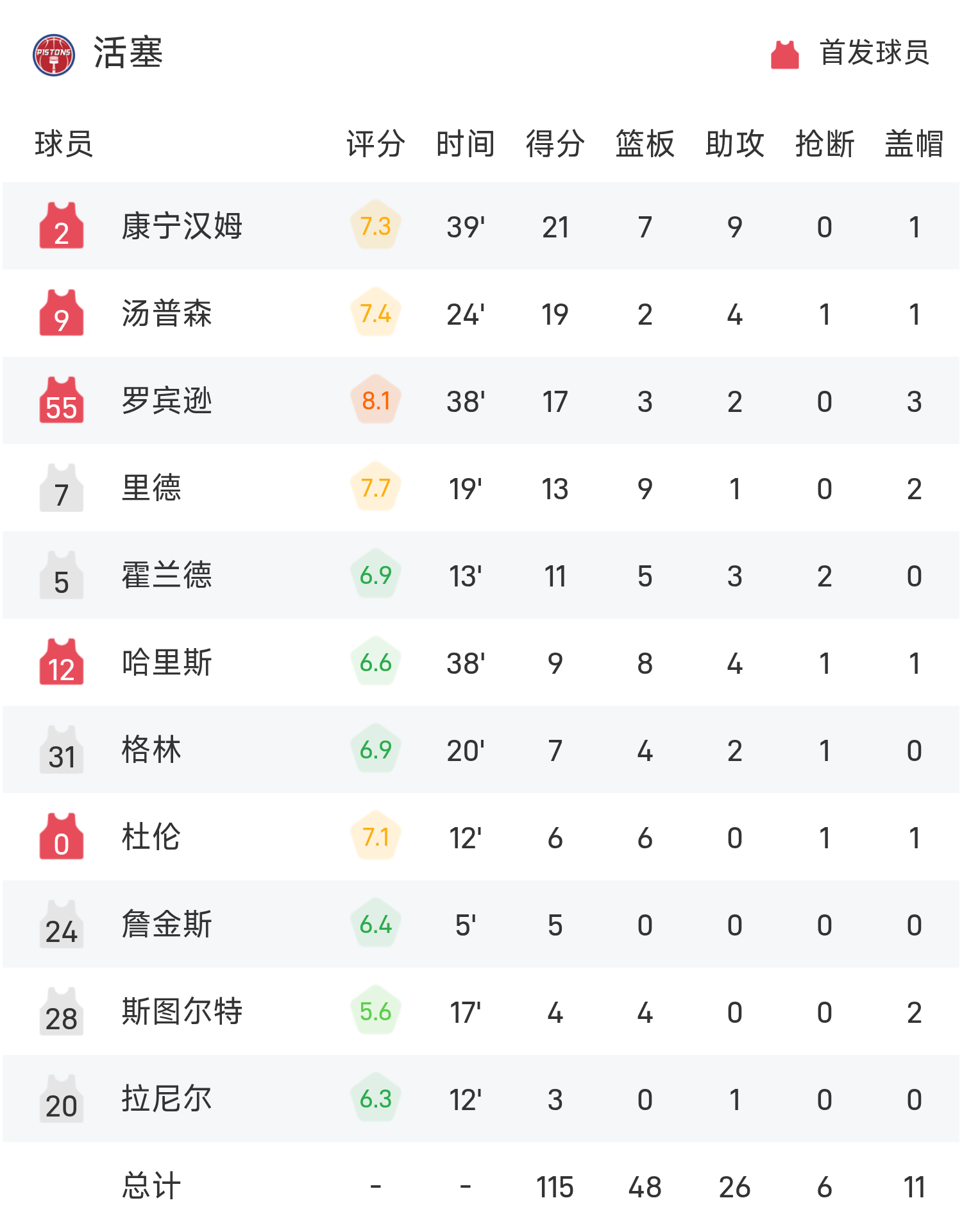รายงานเกม NBA คันนิ่งแฮม 21 แต้ม 7 รีบาวด์ 9 แอสซิสต์ พิสตันส์ 115-111 ร็อคเก็ตส์